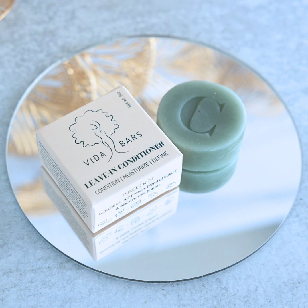 Our Leave-in conditioner bar is your curly hair’s new best friend. Handcrafted with a blend of carefully chosen ingredients, this leave-in conditioner provides all the moisture. Yet it’s not too heavy for those with finer locks. Our choice of rice protein and broccoli oil will help strengthen and thicken your hair, while adding volume, softness, curl definition and shine.